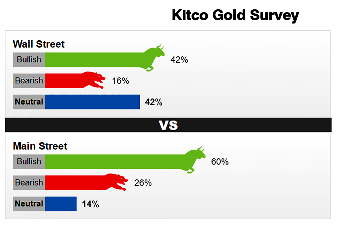 Tuần này, 19 nhà phân tích Phố Wall đã tham gia khảo sát vàng của Kitco News. Theo đó, cả hai khả năng tăng giá và trung lập đều thu được tám phiếu bầu, tương đương 42%; còn lại ba nhà phân tích, tương đương 16%, dự báo giá vàng sẽ giảm trong tuần tới.