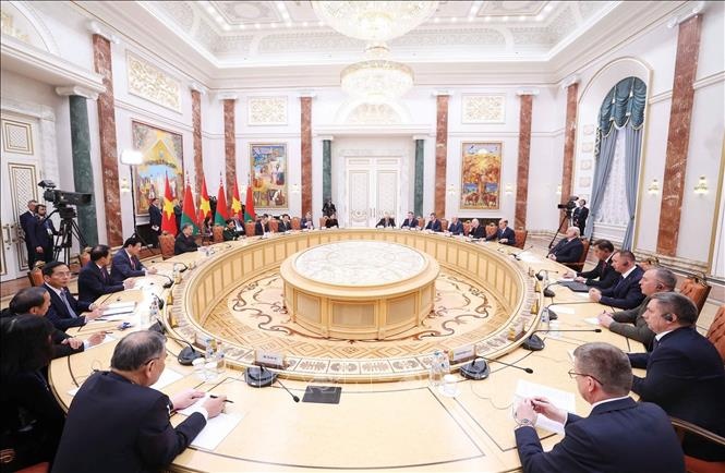 Cụ thể, trong lĩnh vực kinh tế, thương mại và đầu tư, hai nhà lãnh đạo đánh giá cao những tiến triển tích cực thời gian qua và thống nhất cần khai thác hiệu quả hơn nữa những tiềm năng hợp tác từ Hiệp định thương mại tự do giữa Việt Nam và Liên minh Kinh tế Á-Âu (EAEU), trong đó Belarus là thành viên. Tổng Bí thư Tô Lâm đề nghị phía Belarus cùng nghiên cứu các biện pháp nhằm tạo điều kiện để các mặt hàng như nông, thủy, hải sản, phân bón nông nghiệp… có thể tiếp cận thuận lợi các thị trường của nhau, qua đó tăng kim ngạch xuất nhập khẩu giữa hai nước.