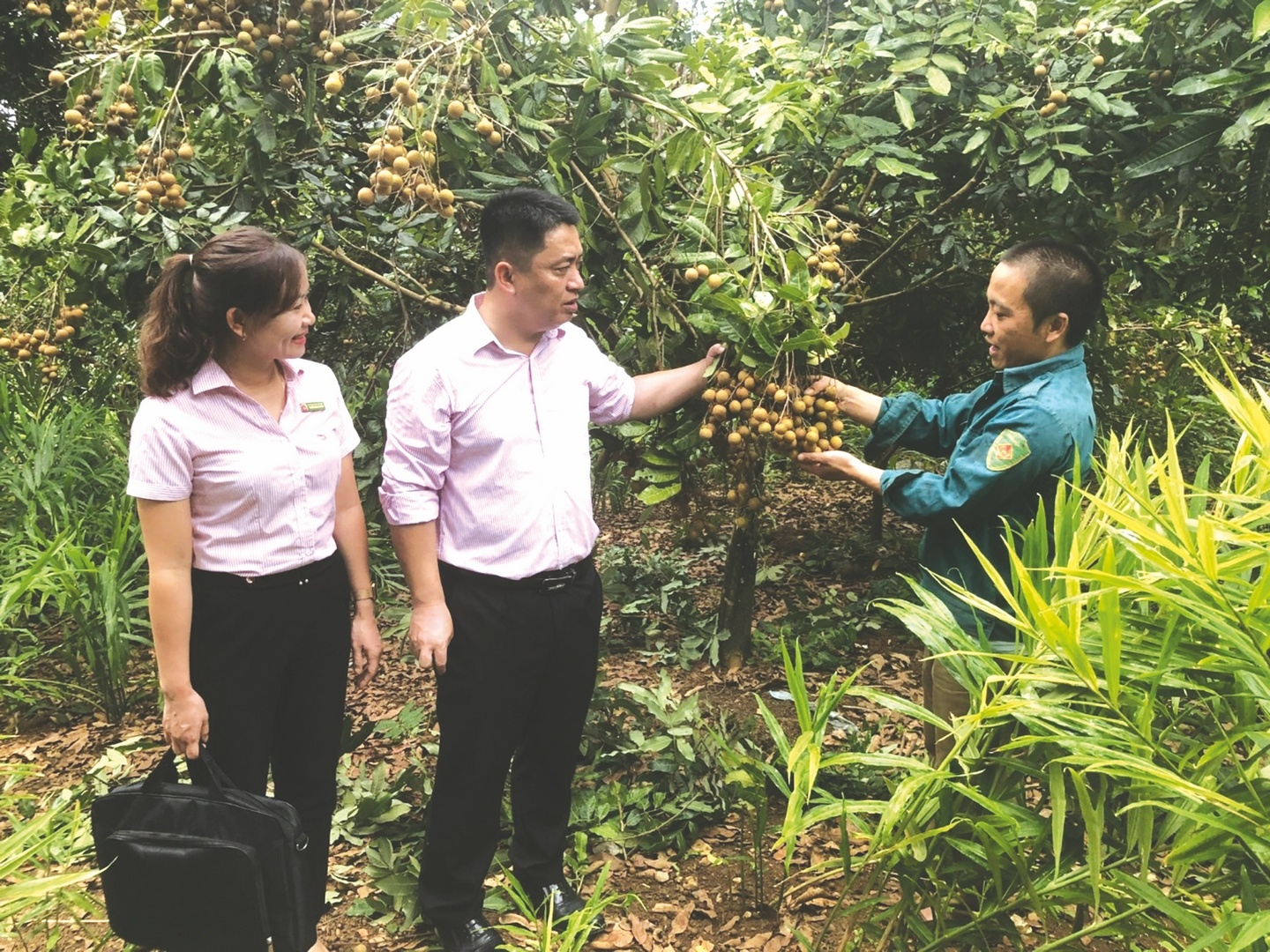 Cách nhà ông Tuấn không xa là gia đình ông Nguyễn Đắc Thắng đang thu hoạch nhãn. Ông Thắng nhẩm tính vụ năm nay với hơn 100 gốc nhãn, cho khoảng 7 tấn quả, thu về khoảng 90 triệu đồng. Trước đây gia đình ông Thắng trồng chanh leo nhưng cho năng suất thấp, cuộc sống gia đình khó khăn. Sau đó, gia đình ông được vay 50 triệu đồng chương trình cho vay giải quyết việc làm của NHCSXH để trồng nhãn. Nhờ tạo được uy tín và sử dụng vốn vay hiệu quả ông Thắng đã được bầu làm Tổ trưởng Tổ tiết kiệm và vay vốn bản Nông Xôm với 15 tổ viên, dư nợ của tổ là 900 triệu đồng. “Hầu hết các gia đình trong tổ sử dụng vốn vay để trồng trọt và chăn nuôi hiệu quả mang lại thu nhập, cải thiện đời sống”, ông Thắng chia sẻ.