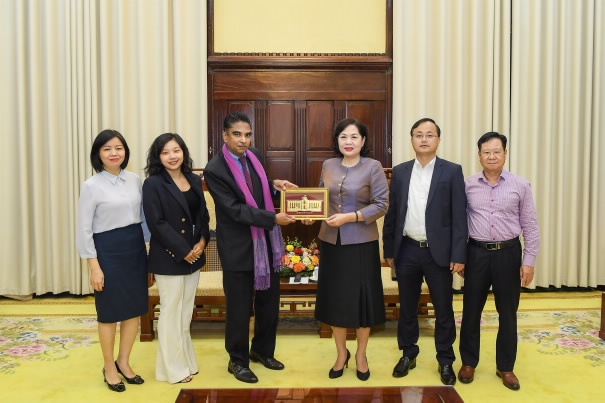 | Thống đốc Nguyễn Thị Hồng tiếp và làm việc với ông A. Saj U. Mendis, Đại sứ đặc mệnh toàn quyền Sri Lanka tại Việt Nam |
