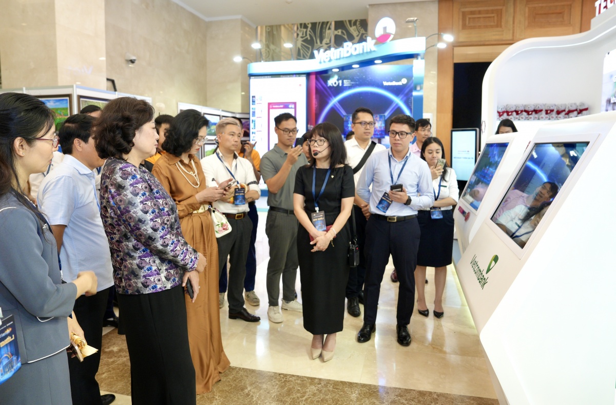 | Thống đốc Nguyễn Thị Hồng, Phó Thống đốc Phạm Tiến Dũng thăm quan các gian triển lãm trước khi diễn ra Sự kiện |