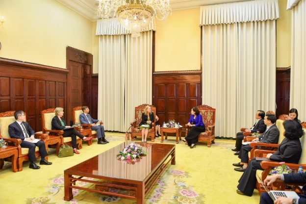 | Thống đốc Nguyễn Thị Hồng tiếp Bà Mariam J. Sherman, Giám đốc Quốc gia Ngân hàng Thế giới khu vực Việt Nam, Lào, Campuchia |