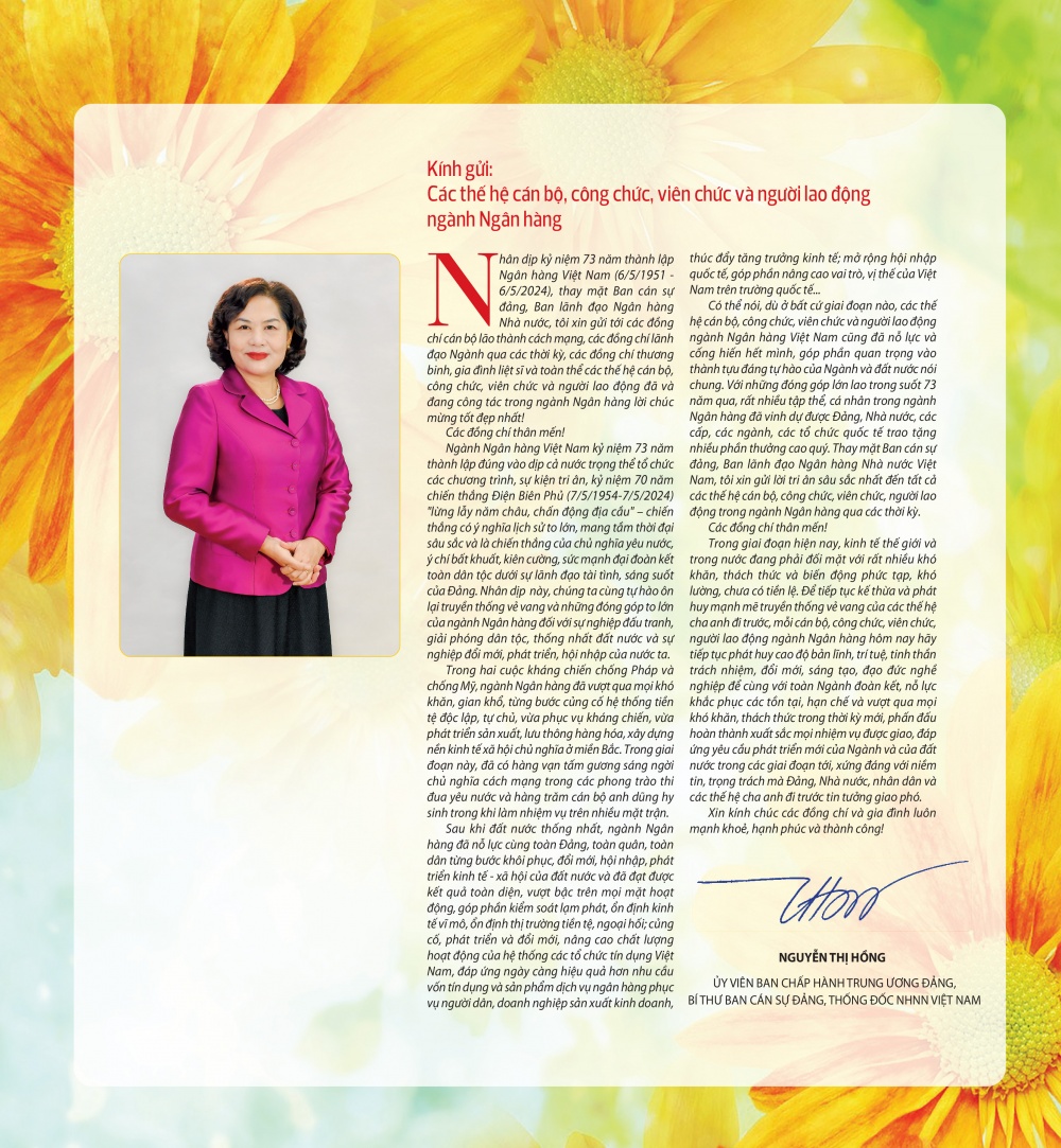 Thư chúc mừng của Thống đốc Ngân hàng Nhà nước nhân dịp kỷ niệm 73 năm thành lập ngành Ngân hàng Việt Nam