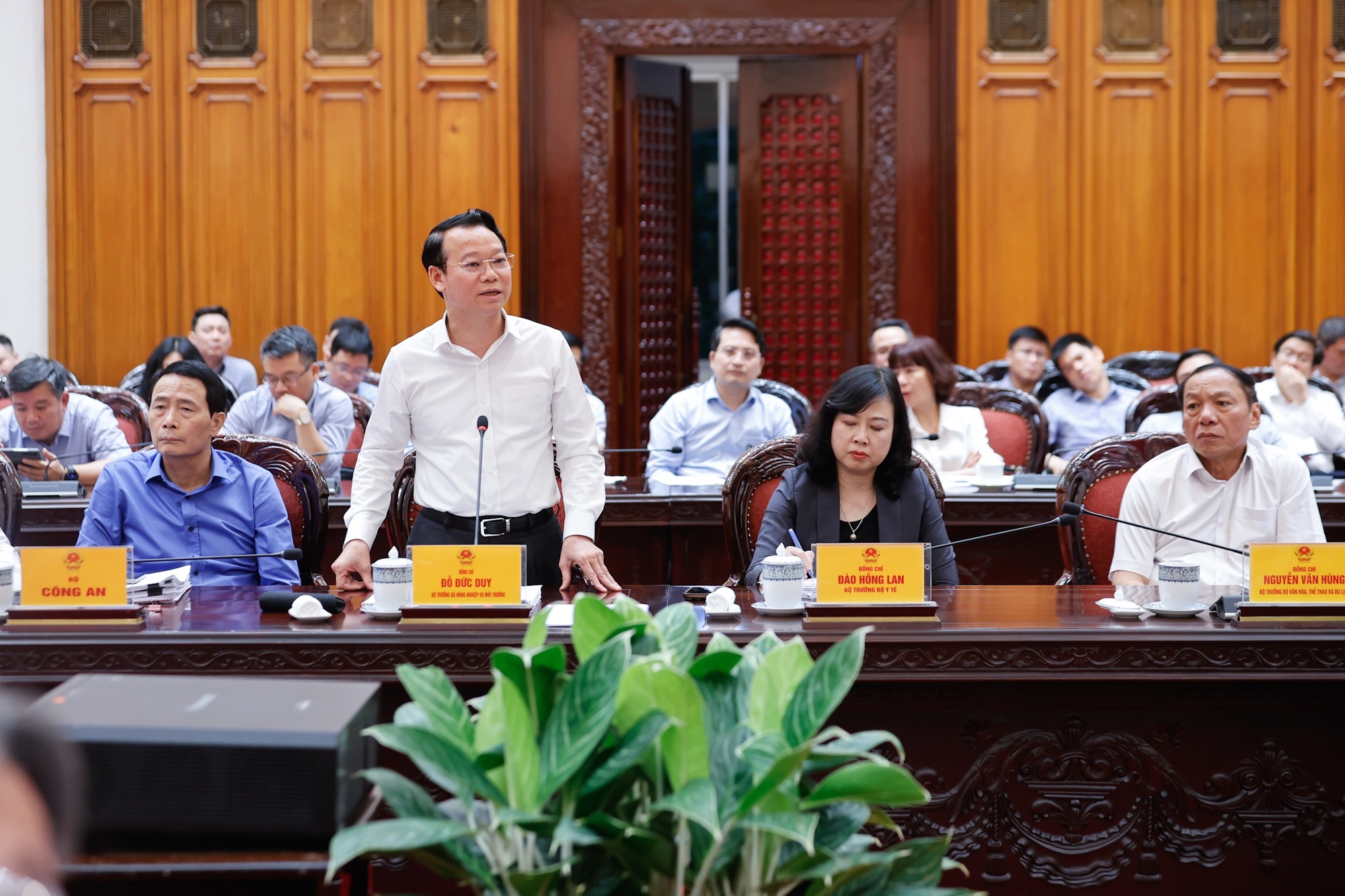 | Các bộ trưởng, thủ trưởng cơ quan ngang bộ dự và phát biểu tại phiên họp - Ảnh: VGP/Nhật Bắc |