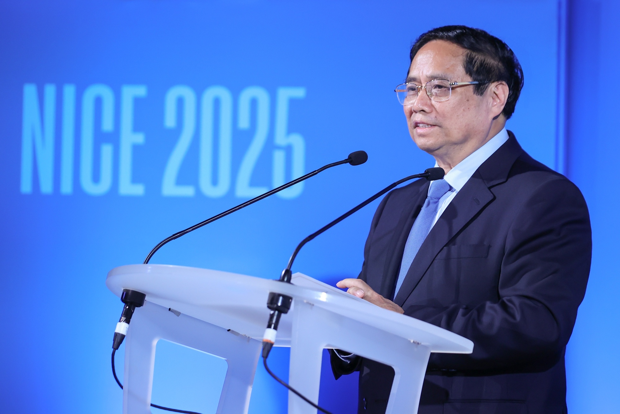 | Thủ tướng chia sẻ kinh nghiệm của Việt Nam dựa trên phương châm "thuận thiên" và tiêu chí "đồng lợi ích, đa mục tiêu" - Ảnh: VGP/Nhật Bắc |