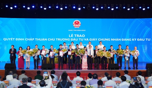 Tại Hội nghị, Thủ tướng chứng kiến lãnh đạo tỉnh Bình Định trao quyết định chấp thuận chủ trương đầu tư, giấy chứng nhận đăng ký đầu tư cho 15 dự án.
