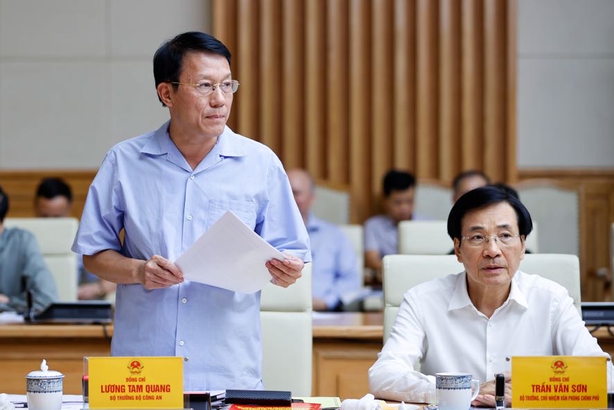 | Bộ trưởng Bộ Công an Lương Tam Quang phát biểu tại phiên họp. Ảnh VGP/Nhật Bắc |
