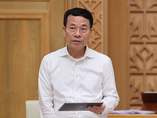 | Bộ trưởng Bộ TT&TT Nguyễn Mạnh Hùng phát biểu tại phiên họp - Ảnh: VGP/Nhật Bắc |