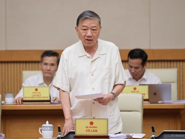 | Bộ trưởng Bộ Công an Tô Lâm phát biểu tại phiên họp - Ảnh: VGP/Nhật Bắc |