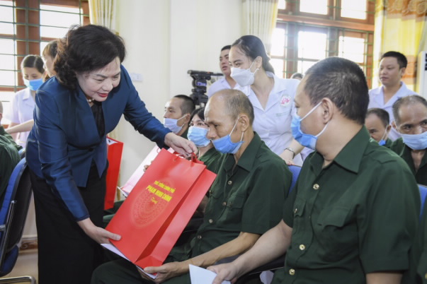 | Thống đốc NHNN Nguyễn Thị Hồng thăm hỏi, động viên, tặng quà thương binh, bệnh binh |