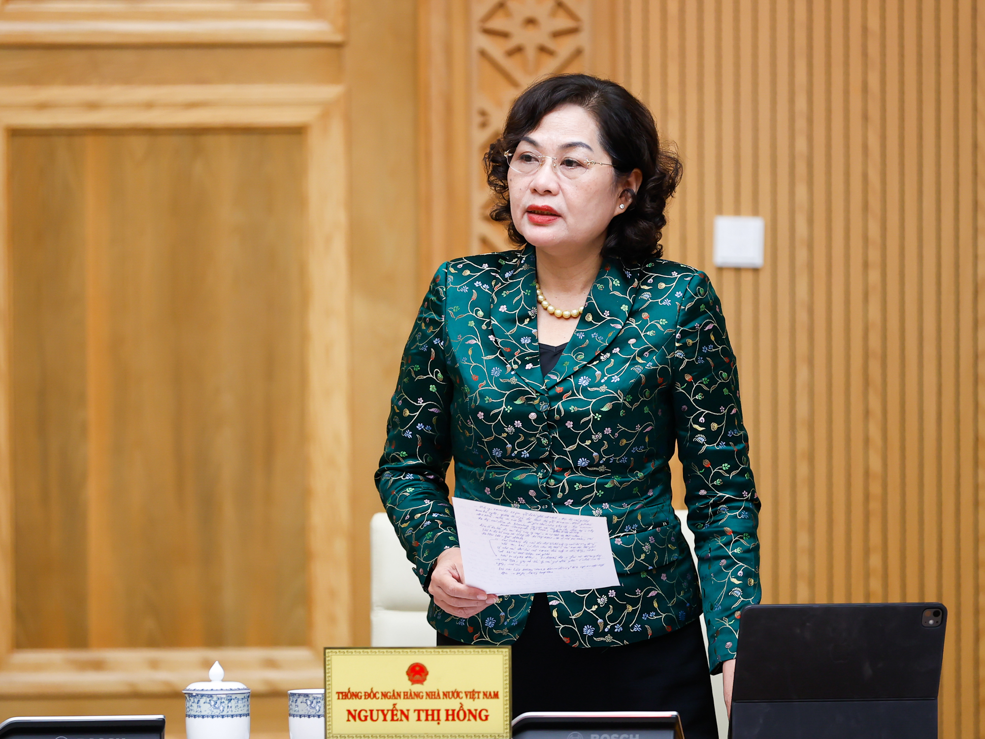 | Thống đốc Ngân hàng Nhà nước Nguyễn Thị Hồng phát biểu tại phiên họp - Ảnh: VGP/Nhật Bắc |