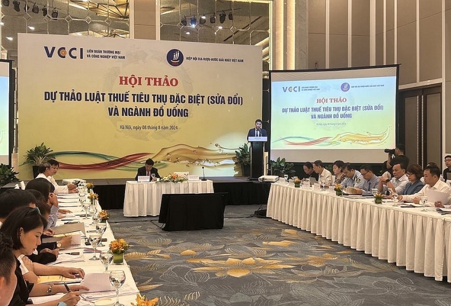 Để tiếp tục ghi nhận và phản ánh các ý kiến đa chiều từ các chuyên gia, các đối tượng chịu tác động trực tiếp, gián tiếp và đóng góp hoàn thiện dự thảo Luật, ngày 8/8, Liên đoàn Thương mại và Công nghiệp Việt Nam (VCCI) phối hợp với Hiệp hội Bia - Rượu - Nước giải khát Việt Nam tổ chức hội thảo “Dự thảo Luật Thuế tiêu thụ đặc biệt (sửa đổi) và ngành đồ uống”.