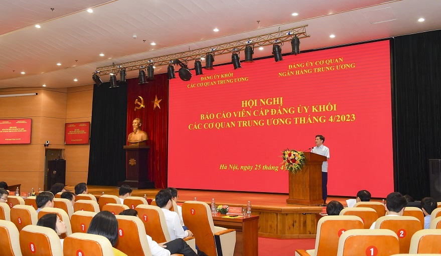 Chiều ngày 25/4, tại trụ sở Ngân hàng Nhà nước Việt Nam (NHNN), Đảng ủy Khối các cơ quan Trung ương tổ chức Hội nghị báo cáo viên cấp Đảng ủy Khối tháng 4/2023. Dự hội nghị có đồng chí Nguyễn Văn Thể - Ủy viên Ban Chấp hành Trung ương Đảng, Bí thư Đảng ủy Khối các cơ quan Trung ương; đồng chí Nguyễn Thị Hồng - Ủy viên Ban Chấp hành Trung ương Đảng, Bí thư Ban cán sự Đảng, Bí thư Đảng ủy cơ quan NHTW, Thống đốc NHNN.