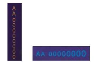 2. Mực không màu phát quang: là cụm số mệnh giá in bằng mực không màu, chỉ nhìn thấy (phát quang) khi soi dưới đèn cực tím.