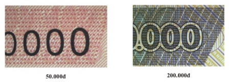 1. Mảng chữ in siêu nhỏ: được tạo bởi các dòng chữ "NHNNVN" hoặc "VN" hoặc số mệnh giá lặp đi lặp lại, nhìn thấy rõ dưới kính lúp.