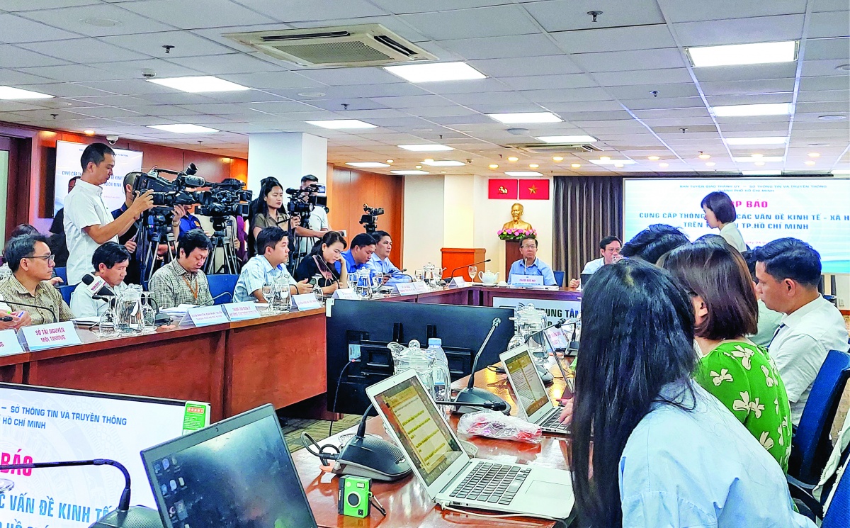 | Phóng viên tác nghiệp tại một buổi họp báo |