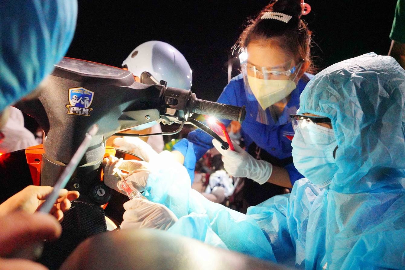 Khoảng 1h15 sáng ngày 30/7, sau khi đón đoàn 284 xe máy với hơn 500 người từ địa phận Quảng Nam, lực lượng Cảnh sát giao thông Đà Nẵng điều phối cho đoàn nghỉ ngơi ở một khu đất trống nằm giữa chốt kiểm dịch của 2 tỉnh. Những người dân nào có xe máy hư hỏng, cần sửa chữa, thay nhớt..., lực lượng chức năng sẽ hướng dẫn di chuyển sang phía đối diện để đội tình nguyện kiểm tra, sửa chữa miễn phí cho các xe mô tô bị hư hỏng, nguy cơ mất an toàn để người dân có thể tiếp tục hành trình trở về nhà.