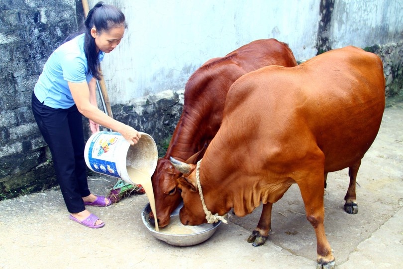 | Nhờ vốn vay ưu đãi của NHCSXH, gia đình bà Trương Thị Duyên đã có thu nhập 5-6 triệu đồng/tháng từ chăn nuôi bò sinh sản |