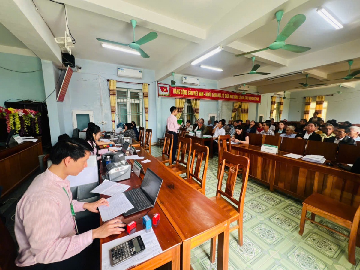 | Cán bộ NHCSXH Ba Đồn giao dịch tại xã |