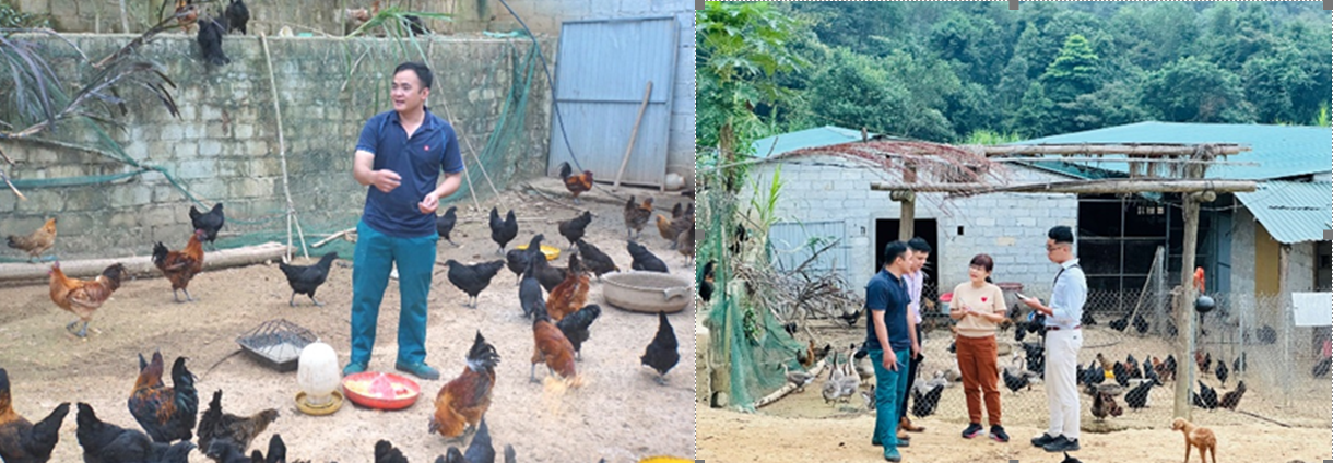 | Đảng viên Hà Văn Ngọc - Giám đốc HTX dịch vụ nông nghiệp tổng hợp thanh niên đang giới thiệu về sản phầm gà đen OCOP |