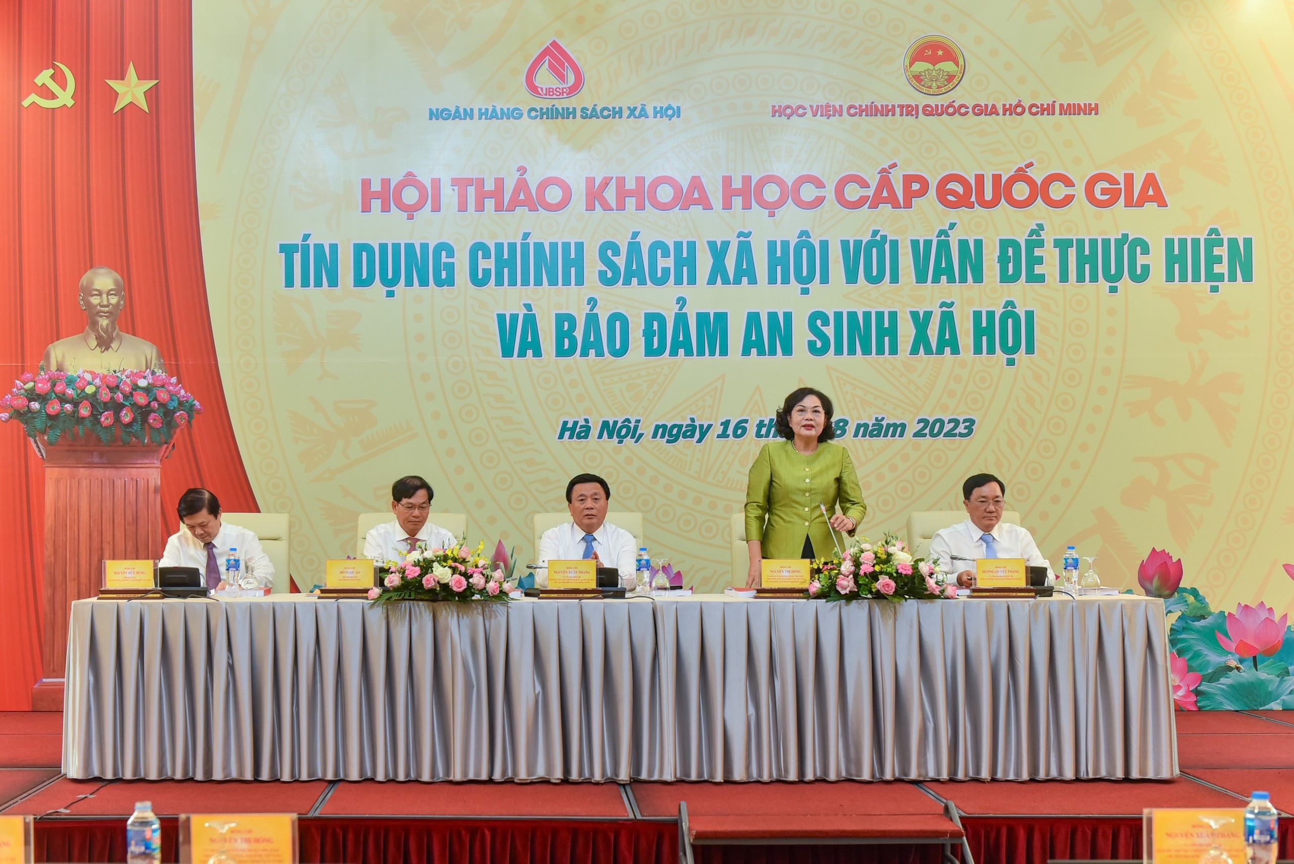 Tham dự và chỉ đạo Hội thảo có GS.TS. Nguyễn Xuân Thắng, Ủy viên Bộ Chính trị, Giám đốc Học viện Chính trị Quốc gia Hồ Chí Minh, Chủ tịch Hội đồng lý luận Trung ương; đồng chí Nguyễn Thị Hồng, Ủy viên Ban chấp hành Trung ương Đảng, Thống đốc Ngân hàng Nhà nước Việt Nam (NHNN) kiêm Chủ tịch Hội đồng quản trị NHCSXH; TS. Dương Quyết Thắng, Tổng Giám đốc NHCSXH… cùng đại diện một số cơ quan quản lý nhà nước, các tổ chức chính trị - xã hội, nhà khoa học, chính quyền địa phương.