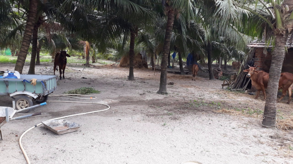 | Hình ảnh nông dân xã Cát Hiệp chăn nuôi bò dưới tán dừa xiêm |