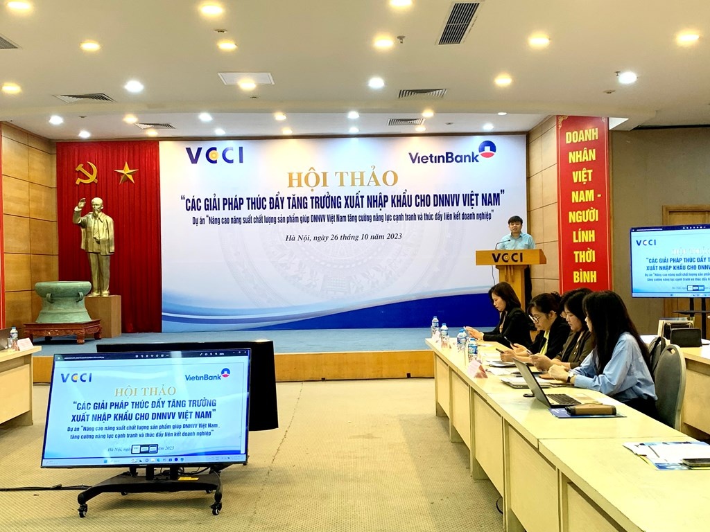 Những nội dung trên được các chuyên gia, DN đề xuất tại hội thảo “Các giải pháp thúc đẩy tăng trưởng xuất nhập khẩu cho doanh nghiệp nhỏ và vừa Việt Nam” do Liên đoàn Thương mại và Công nghiệp Việt Nam (VCCI) phối hợp với Ngân hàng TMCP Công thương Việt Nam (VietinBank) Chi nhánh Hà Nội tổ chức ngày 26/10.