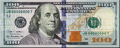 12. Chân dung và ảnh in mờ: chân dung Tổng thống Benjamin Franklin một trong những người khai sinh ra nước Mỹ nằm ở phía trước tờ tiền mới 100 Dollar . Ở phía sau tờ tiền có hình ảnh in mờ Dinh độc lập. Đây là hình ảnh phía sau chứ không phải phía trước tòa nhà. Các hình ovan bao quanh bức chân dung và ảnh mờ tòa nhà đã được bỏ đi và những hình ảnh này đã được phóng to lên.