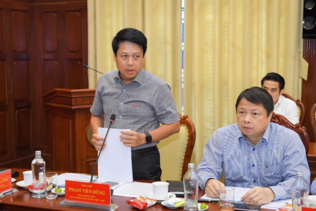 | Phó Thống đốc Phạm Tiến Dũng phát biểu tại buổi làm việc |