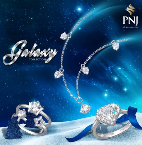 Trên nền chất liệu vàng ánh kim quý phái, “Galaxy” đậm phong cách thời trang tích hợp hai xu hướng nổi bật: Quý phái – Truyền thống với thiết kế có viên đá chính phù hợp với phái đẹp yêu thích sự sang trọng; Phá cách – Hiện đại với những viên đá Swarovski® Zirconia mang giác cắt độc đáo, lần đầu tiên có mặt trên thị trường trang sức Việt Nam.