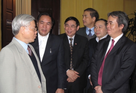 Cùng đi với Tổng Bí thư có Phó Thủ tướng Vũ Văn Ninh, lãnh đạo nhiều Bộ, Ban, ngành của Trung ương. Tại buổi làm việc, một lần nữa, Tổng Bí thư nhấn mạnh vai trò của Nhà nước trong hoạt động Ngân hàng.