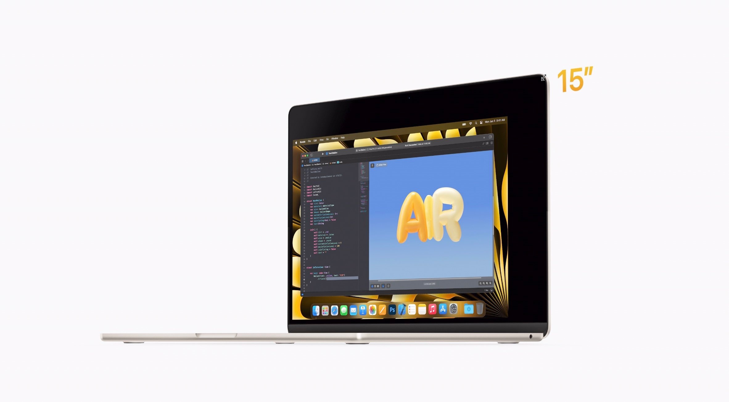 Apple cho hay thiết bị này là máy tính xách tay 15 inch “mỏng nhất thế giới” và cho biết nó chỉ nặng hơn 1,36kg một chút. Thiết bị đi kèm với thời lượng pin lên tới 18 giờ, độ sáng 500 nits và webcam 1080p. MacBook Air mới với màn hình 15,3 inch có giá 1.299 USD và sẽ được bán ra vào tuần sau.