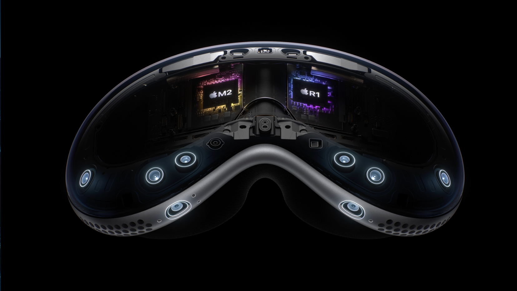 Thiết bị này được cung cấp sức mạnh bởi hai chip: M2 và chip R1 mới để xử lý cảm biến thời gian thực. Theo Apple, Vision Pro có một dải kính duy nhất ở mặt trước của thiết bị, cùng với nút digital crown cho phép bạn bật và tắt AR và VR. Nó cũng hỗ trợ spatial audio thông qua loa tích hợp và bộ pin bên ngoài có khả năng kéo dài 2 giờ chỉ với một lần sạc.