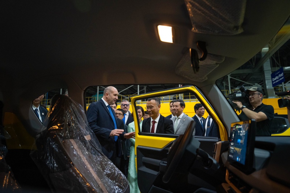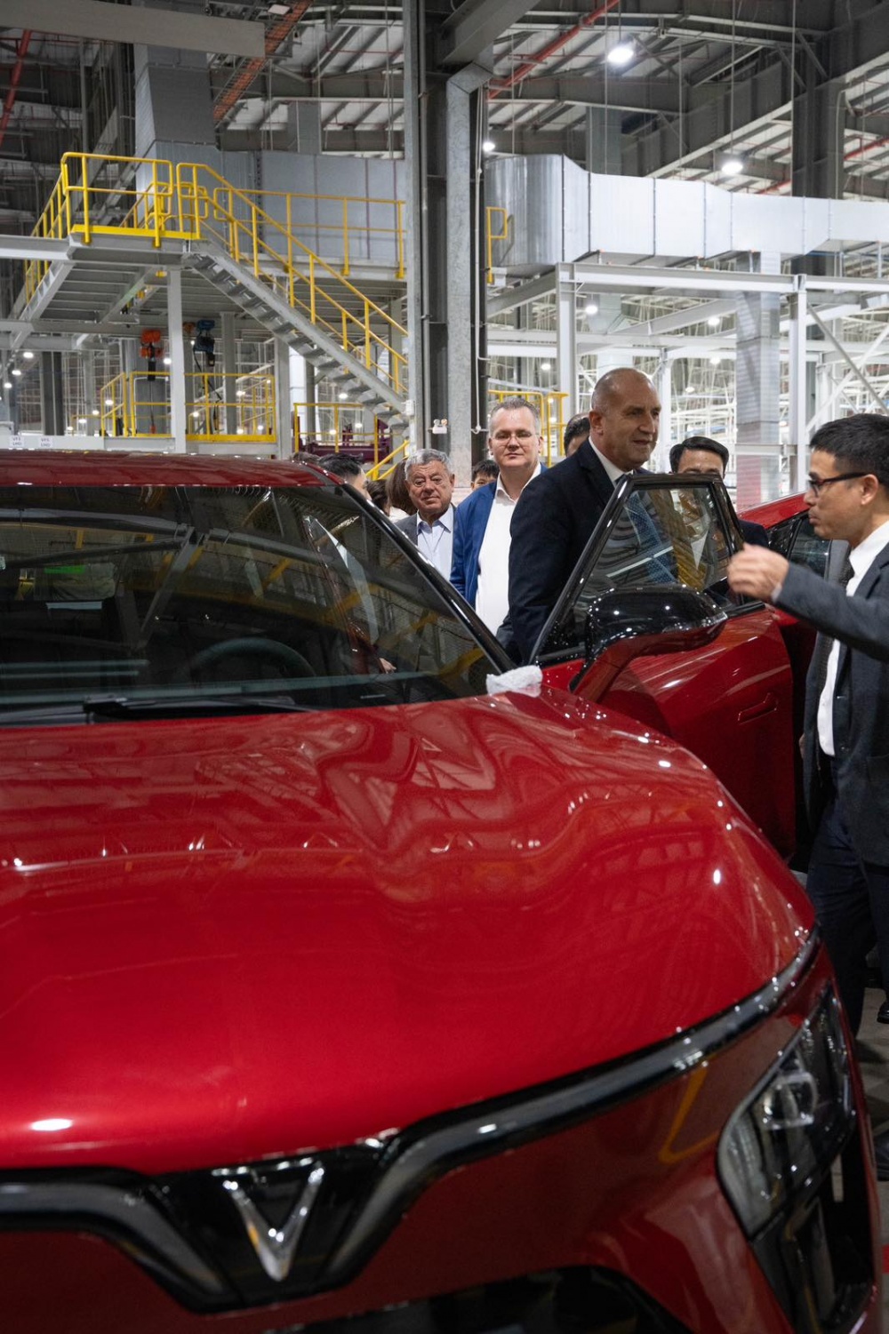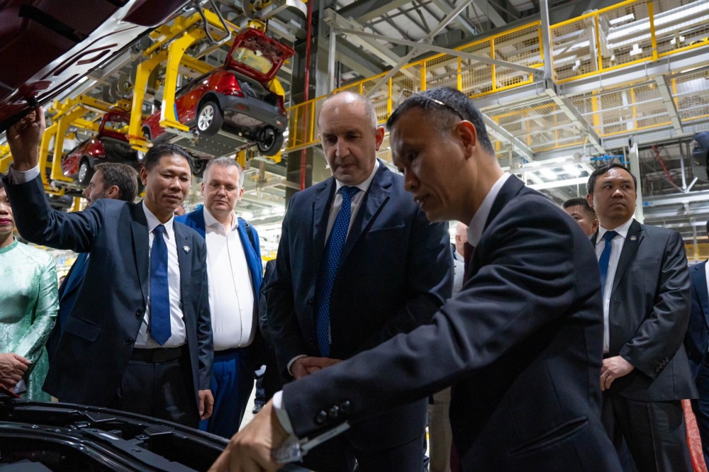 Tổng thống Rumen Radev đặc biệt dành nhiều thời gian tham quan các xưởng, tìm hiểu kỹ quy trình sản xuất của VinFast. Ông đánh giá cao chất lượng, tiềm năng thành công của xe điện VinFast tại thị trường châu Âu và cho biết Bulgaria có thế mạnh trong nghiên cứu, sản xuất và phát triển các linh kiện, cảm biến và hệ điều hành thông minh cho xe điện. Nhiều năm nay, Bulgaria đã tham gia vào chuỗi cung ứng của nhiều hãng xe châu Âu, Mỹ và Nhật Bản.