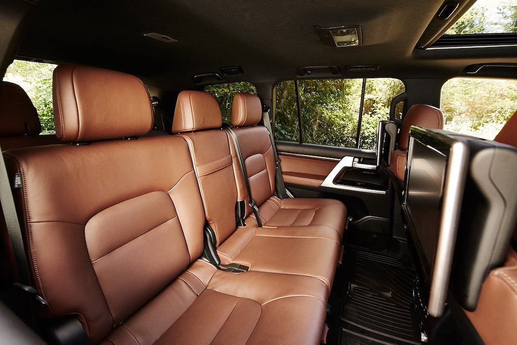Bên trong cabin, hãng xe Nhật cung cấp "full-option" với ghế ngồi bọc da, ghế trước chỉnh điện, sưởi/làm mát, mà hình cảm ứng có định vị GPS, cửa sổ trời chỉnh điện, điều hòa tự động 4 vùng, 28 cửa gió, âm thanh JBL, hệ thống DVD giải trí cho hàng ghế sau, sạc điện thoại không dây...