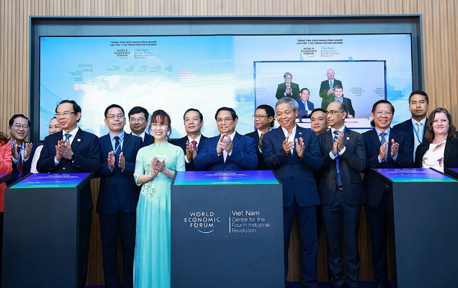 | Thủ tướng Chính phủ Phạm Minh Chính cùng lãnh đạo TP. Hồ Chí Minh và các doanh nghiệp sáng lập C4IR tại lễ khánh thành trung tâm Cách mạng Công nghiệp lần thứ 4 |