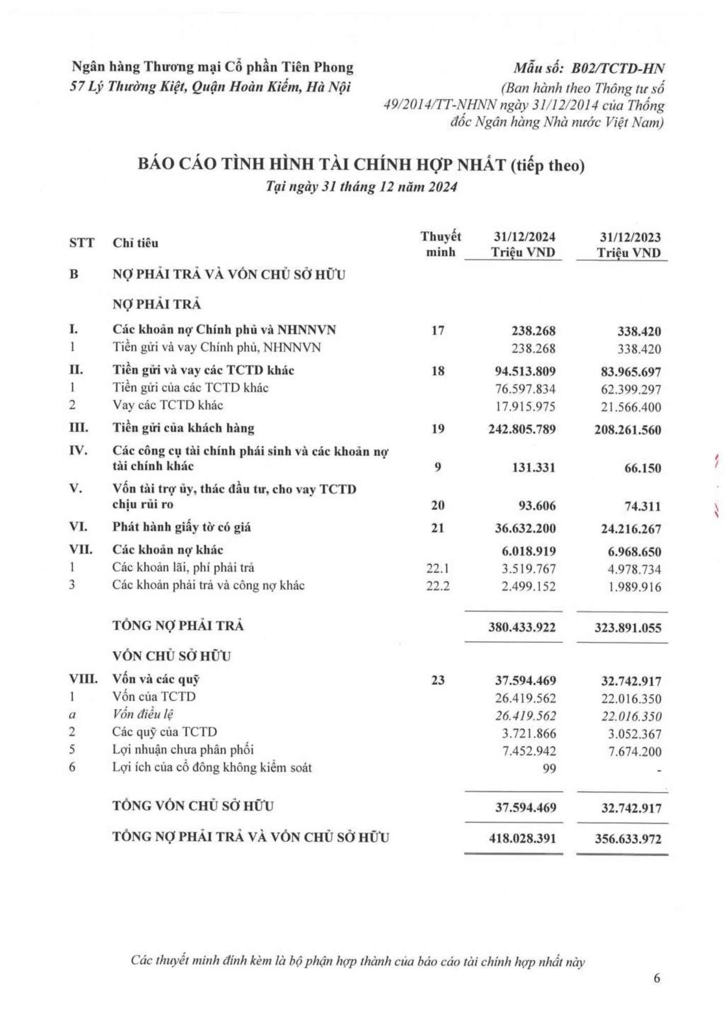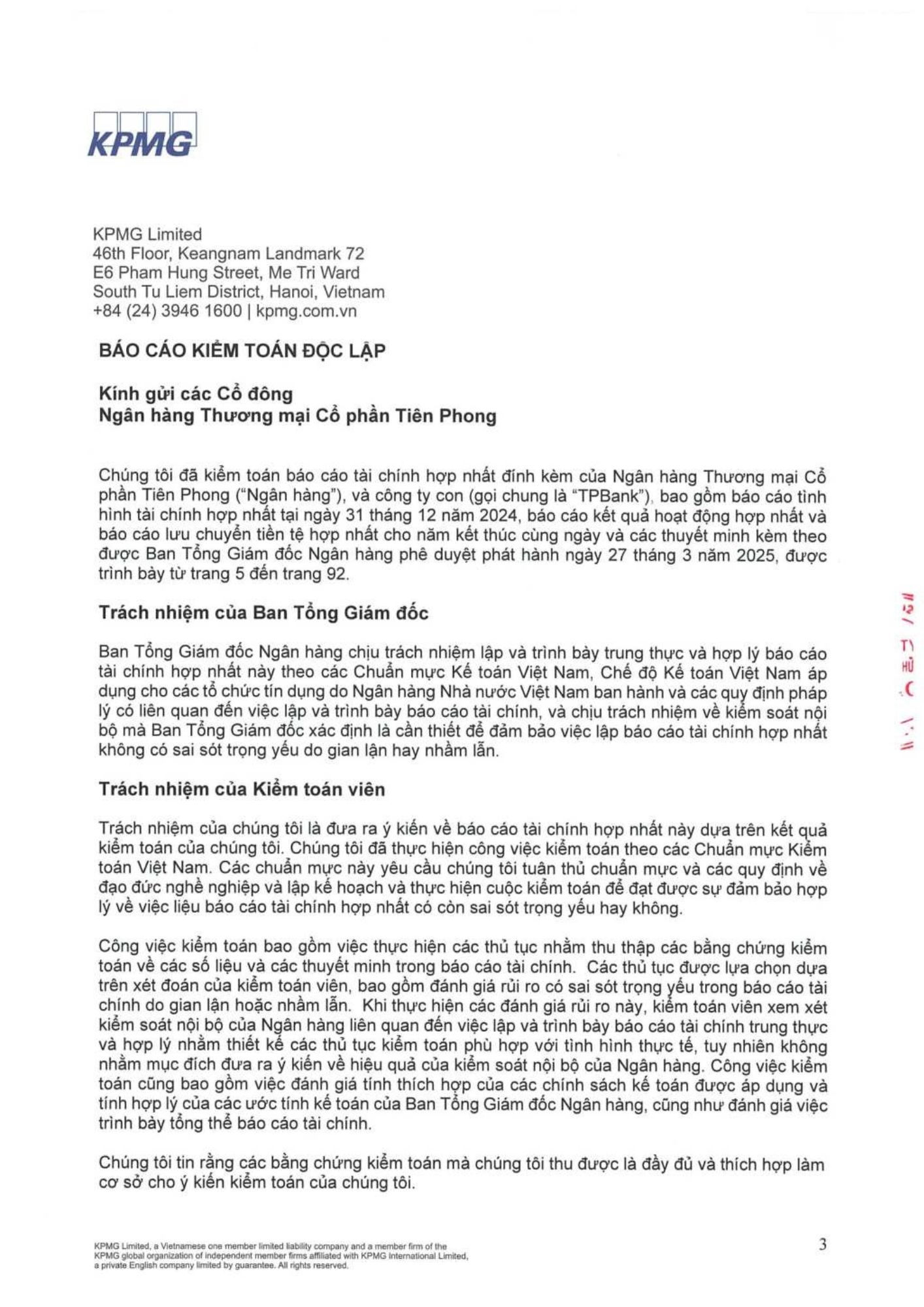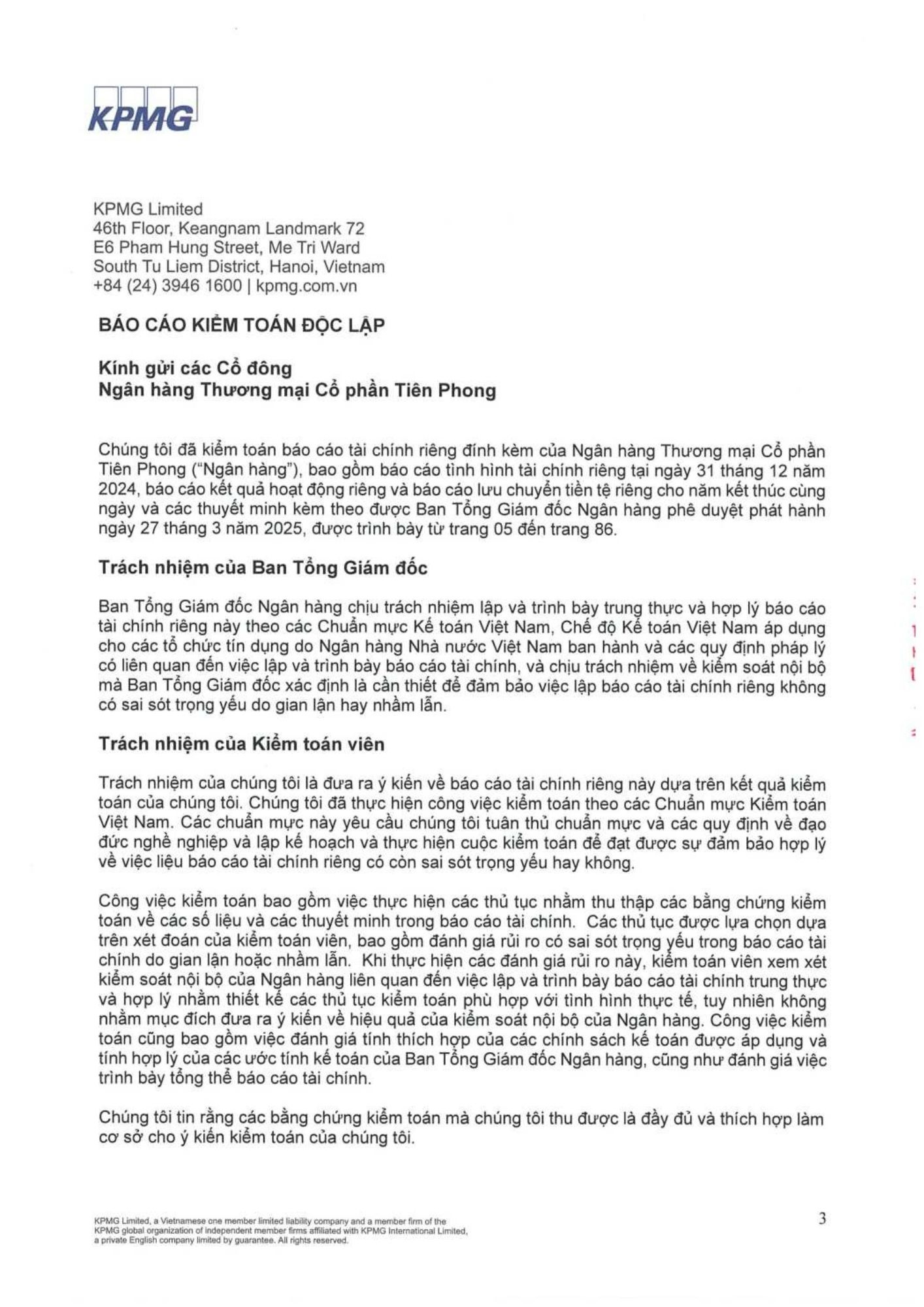 TPBank công bố báo cáo tài chính kiểm toán 2024