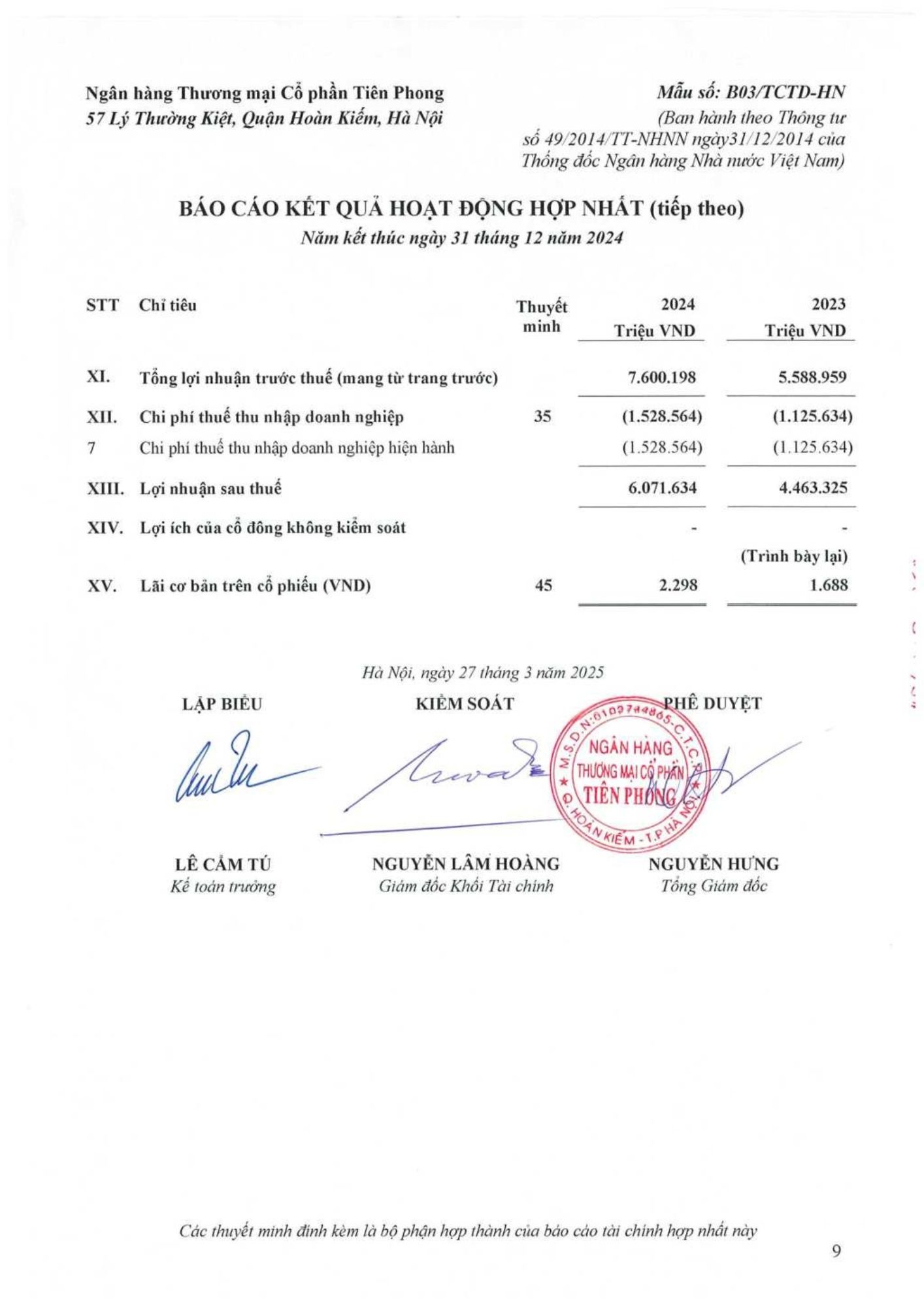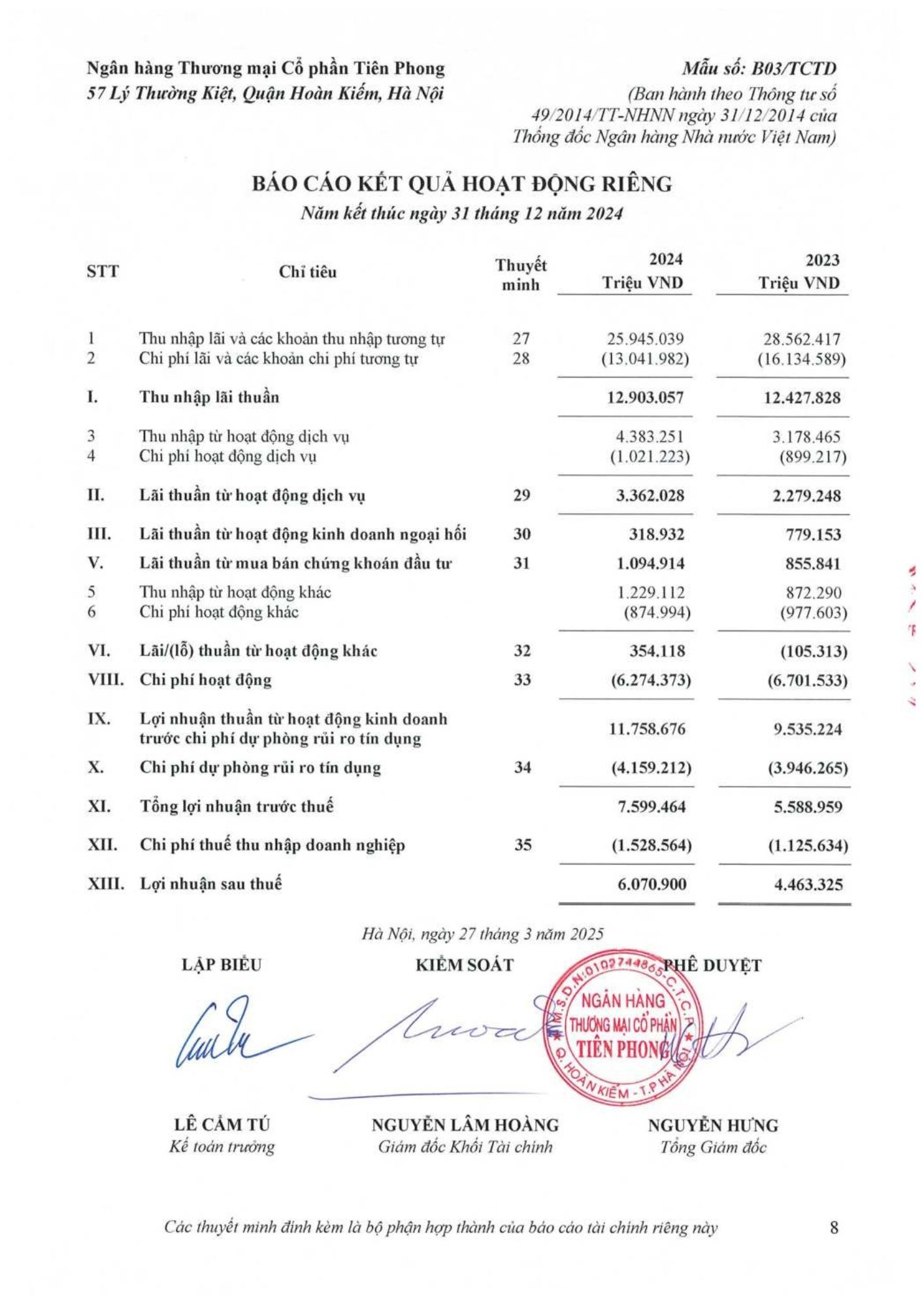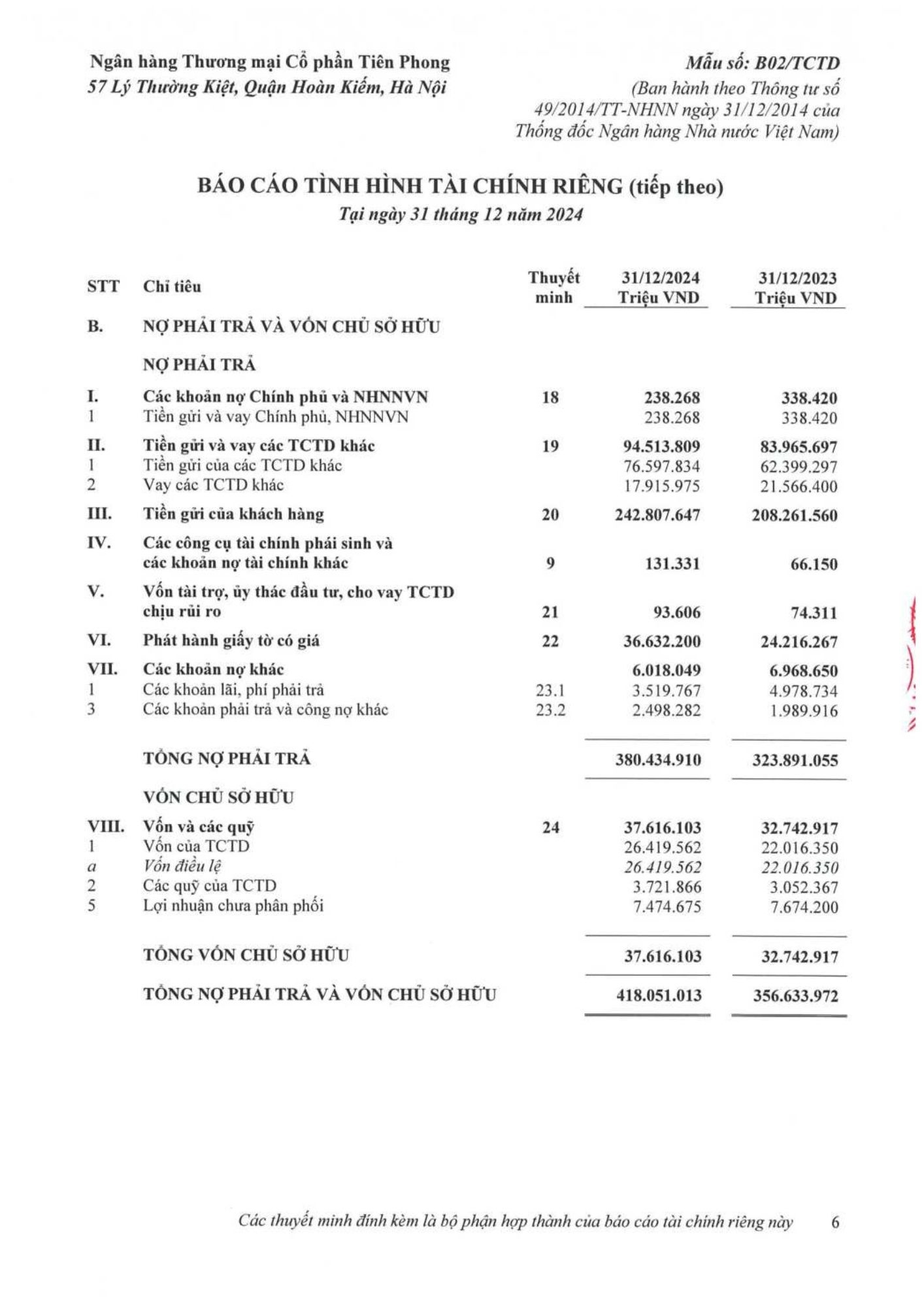 TPBank công bố báo cáo tài chính kiểm toán 2024