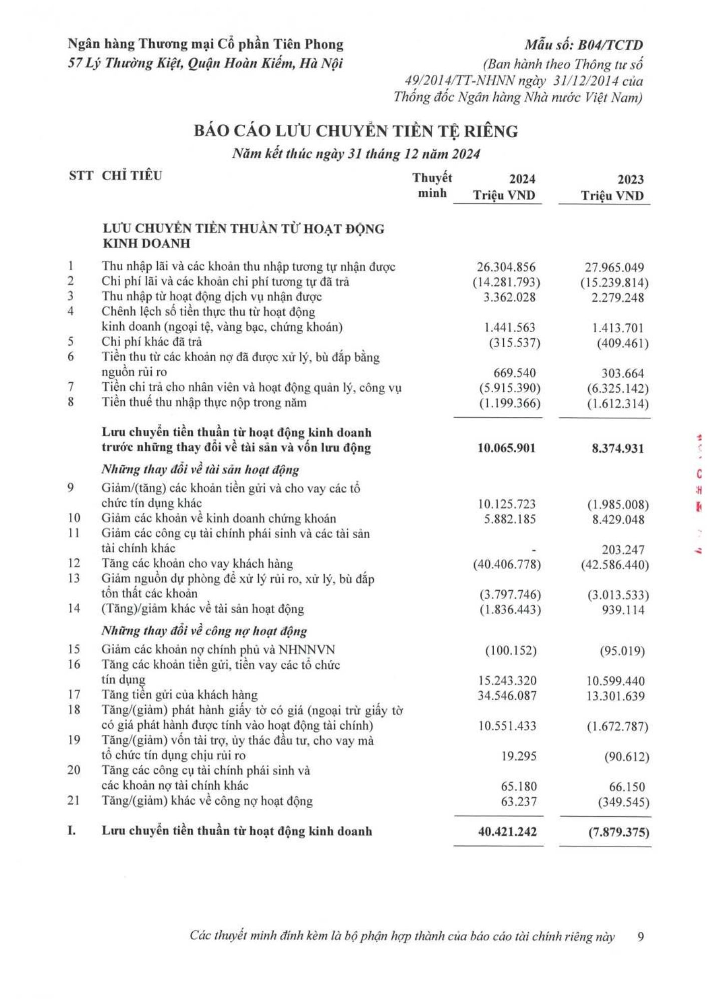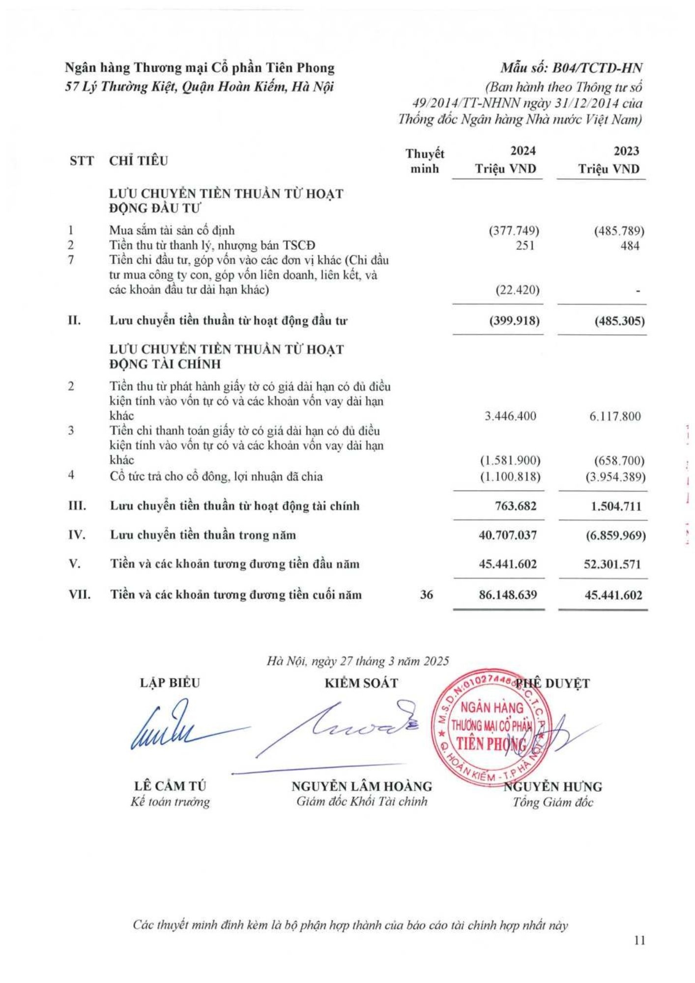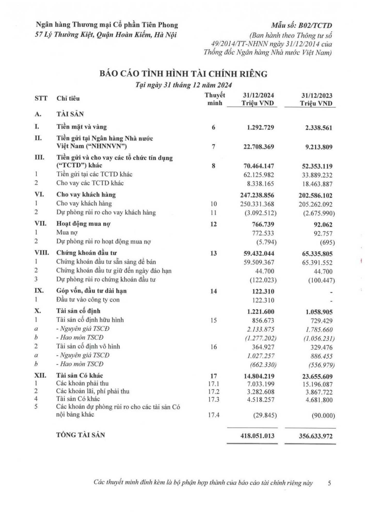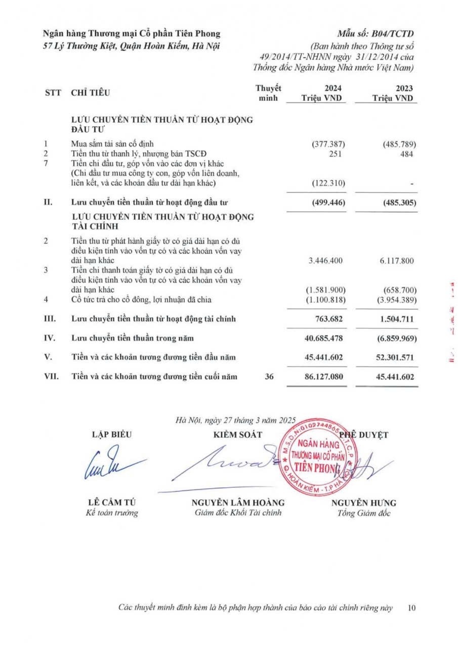 Ngân hàng TMCP Tiên Phong (TPBank) vừa công bố báo cáo tài chính kiểm toán riêng lẻ và hợp nhất năm 2024, đánh dấu một năm tăng trưởng mạnh mẽ và bền vững với mức tăng trưởng 36% so với năm trước.