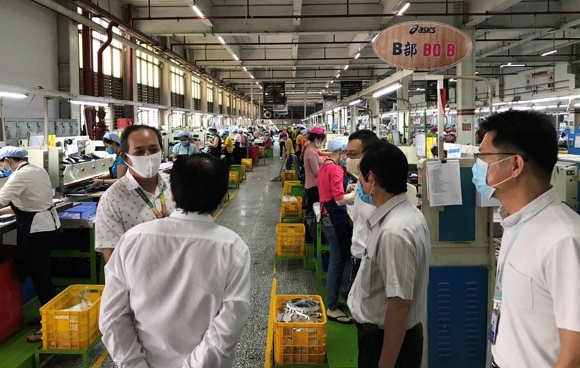 | Đoàn công tác liên ngành kiểm tra công tác phòng, chống dịch Covid-19 tại Công ty PouYuen Việt Nam. Ảnh: Trung tâm Báo chí TPHCM |