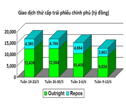 Đối với tín phiếu kho bạc, tuần qua, giá trị repos tín phiếu đạt 1.025,7 tỷ đồng; không có giao dịch outright tín phiếu kho bạc nào được thực hiện.