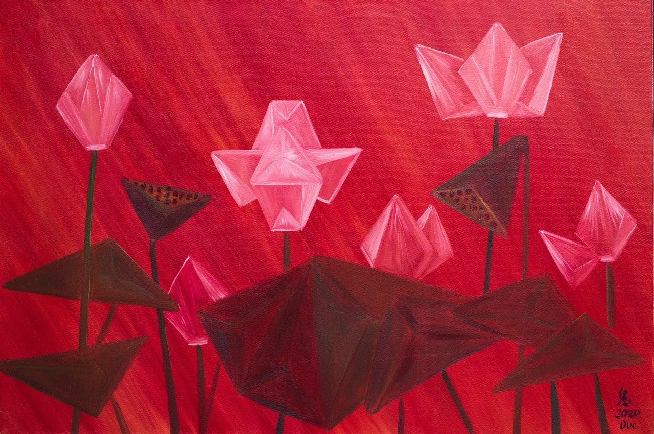 Thấu hiểu những ý nghĩa biểu tượng cao đẹp ấy, họa sĩ Phật tử Kim Đức đã luôn sáng tạo và cống hiến để mang đến cho đời nhiều bức tranh đẹp về loài hoa này. Đặc biệt bức “Liên Hoa Tịnh Cảnh” của họa sĩ đã được Giáo hội Phật giáo Việt Nam trưng bày tại Đại hội Đại biểu Phật giáo toàn quốc lần thứ IX (2022).