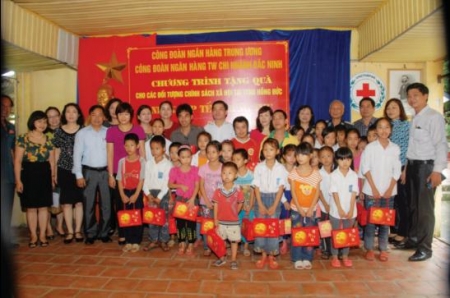 Ngày 12/9/2013, tại cơ sở của Trung tâm nhân đạo Hồng Đức (Thuộc Hội Chữ thập đỏ Việt Nam) ở Chùa Ngòi, huyện Lương Tài, tỉnh Bắc Ninh, Công đoàn Cơ quan Ngân hàng Nhà nước Trung ương (CĐNHTW) đã phối hợp với CĐNHNN chi nhánh tỉnh Bắc Ninh tặng quà Trung thu cho các đối tượng chính sách.