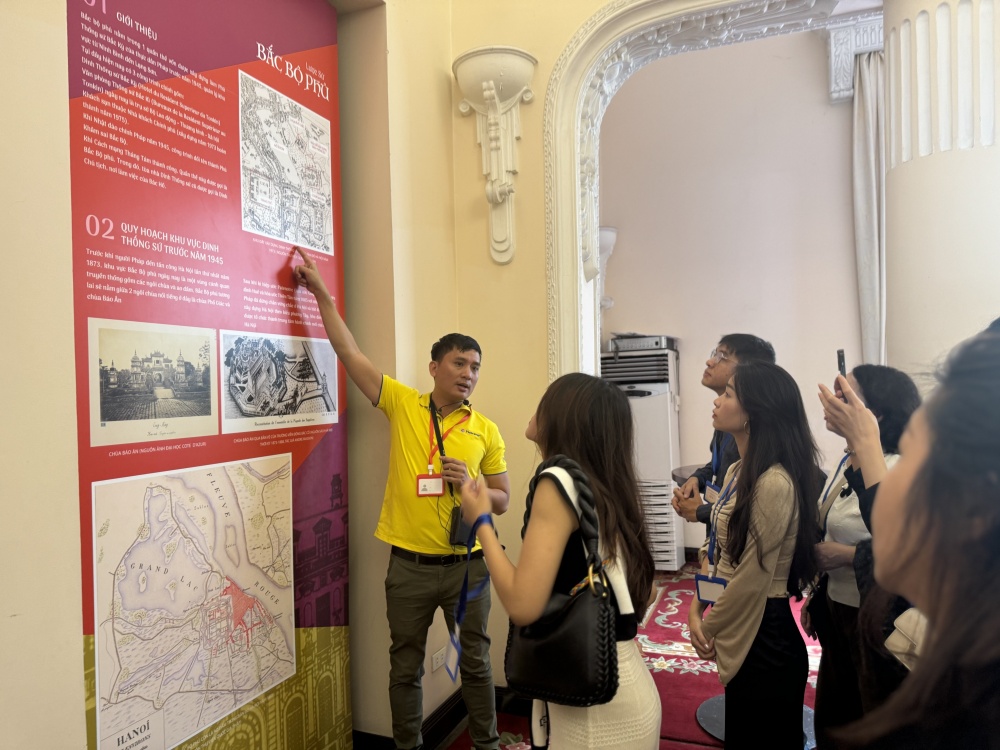 | Hướng dẫn khách tham quan Nhà khách Chính phủ - một trong những điểm đến ưa thích tại Lễ hội Thiết kế Sáng tạo Hà Nội 2024 |