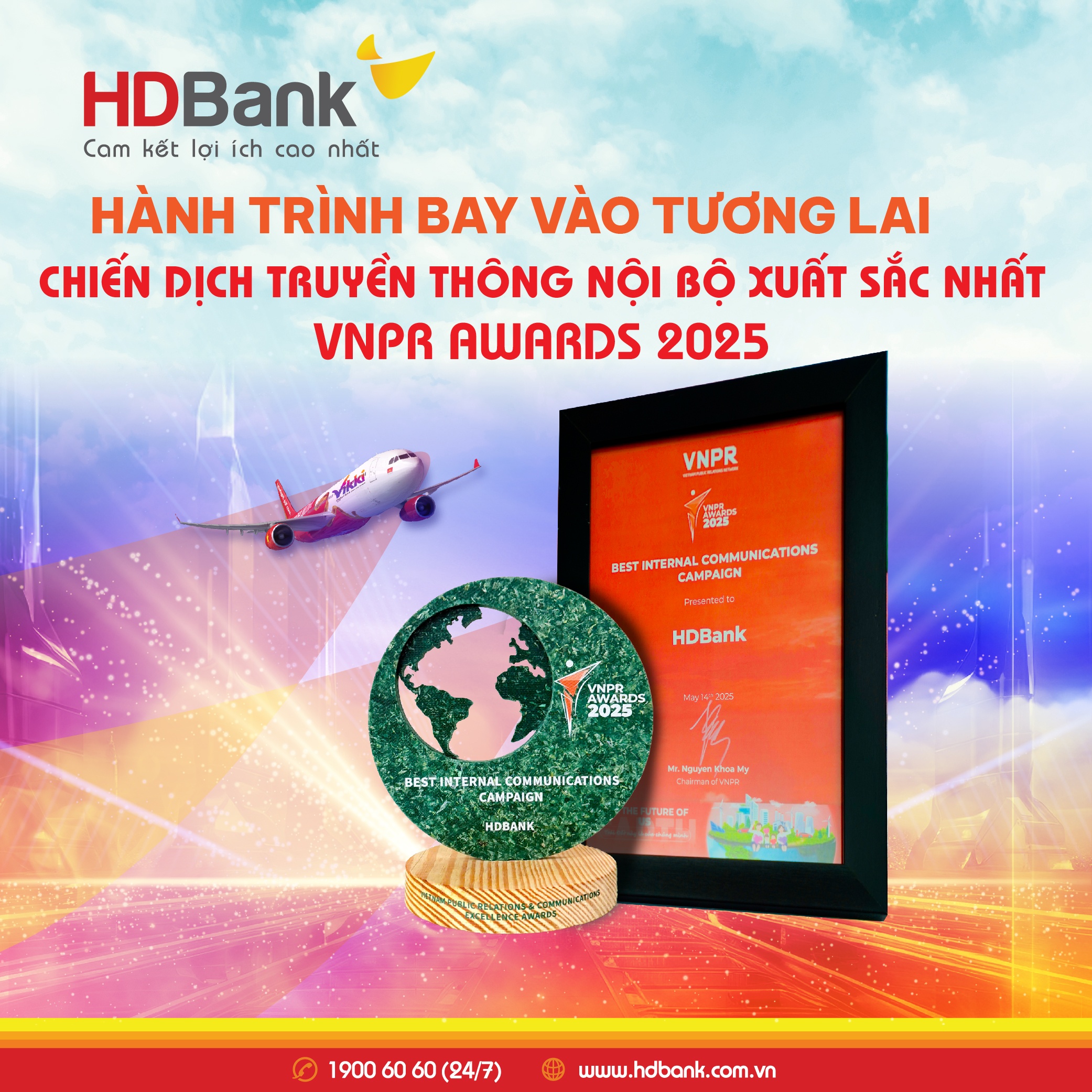 Chính sự đầu tư bài bản và tinh tế trong chiến lược truyền thông nội bộ đã giúp HDBank được vinh danh tại VNPR Awards 2025 với giải thưởng “Chiến dịch truyền thông nội bộ xuất sắc nhất” - giải thưởng uy tín do Mạng lưới Quan hệ Công chúng Việt Nam (VNPR) tổ chức. Đây cũng là năm thứ hai liên tiếp HDBank được xướng tên ở hạng mục này, ghi dấu sự nhất quán và hiệu quả trong cách tiếp cận từ bên trong.