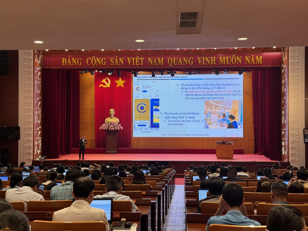 Tại Hội nghị đại diện của Agribank Quảng Ninh và Nam Á Bank Quảng Ninh đã giới thiệu, hướng dẫn sử dụng các sản phẩm, ứng dụng dành cho các trường học thực hiện TTKDTM qua hệ thống ngân hàng; Cung cấp thông tin về dịch vụ thẻ ATM để các cơ sở giáo dục chủ động phối hợp với các ngân hàng trên địa bàn mở tài khoản/thẻ ATM cho học sinh và các điều kiện cần thiết để triển khai kết nối giữa Ngân hàng với các cơ sở giáo dục để TTKDTM, đồng thời đưa ra các giải pháp để thúc đẩy TTKDTM trong ngành Giáo dục.