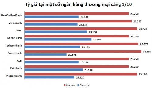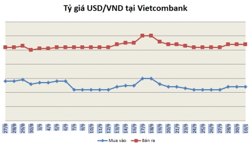 | Tỷ giá ngày 30/9: Các ngân hàng giữ nguyên giá mua-bán |