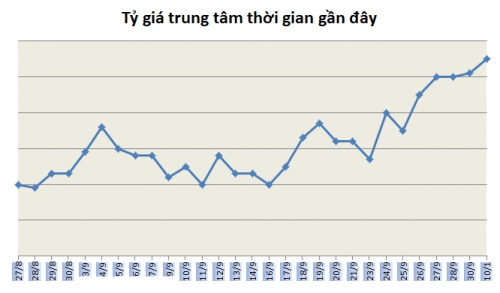 Sáng nay, Ngân hàng Nhà nước Việt Nam điều chỉnh tăng tỷ giá trung tâm lên 4 đồng, hiện đang ở mức 23.165 đồng/USD. Với biên độ +/-3% đang được áp dụng, tỷ giá trần là 23.861 đồng/USD và tỷ giá sàn là 22.470 đồng/USD.