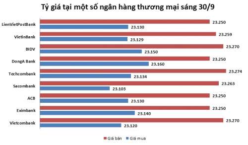 Tỷ giá ngày 30/9: Các ngân hàng giữ nguyên giá mua-bán