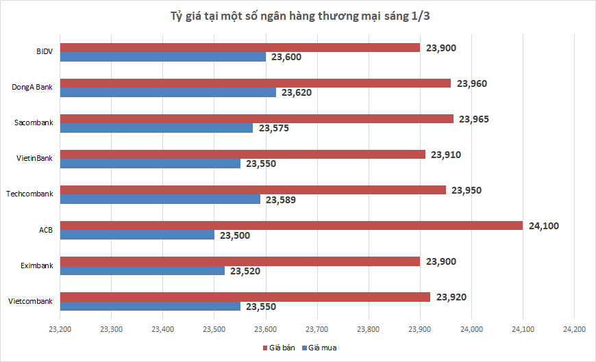 Tỷ giá sáng 1/3: Tỷ giá trung tâm giảm nhẹ 1 đồng